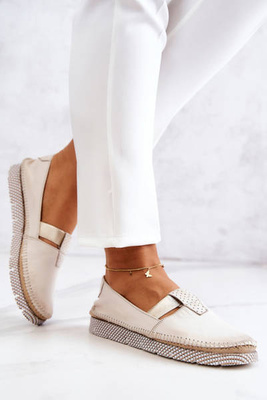 Damskie Skórzane Półbuty Loafery Beżowe Mollie