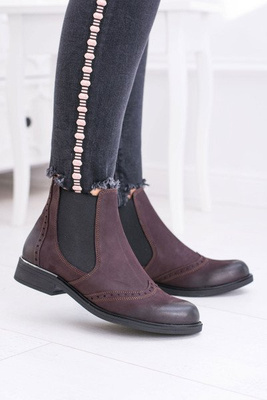 Neex Bordowe Skórzane Męskie Ocieplane Botki Trzewiki Timmo
