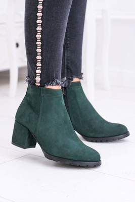 Damskie Zielone Skórzane Botki Na Słupku Nicole