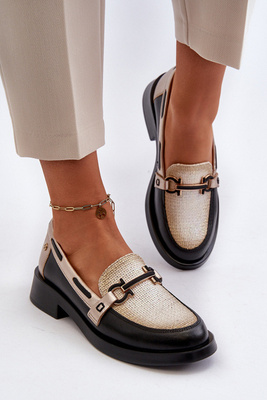Skórzane Mokasyny Damskie CheBello 4383 Złote