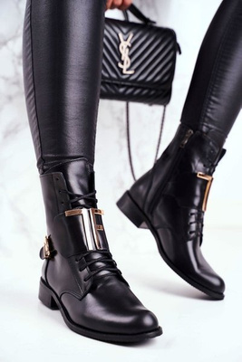 +3Botki Damskie Skórzane Czarne Nicole 2591