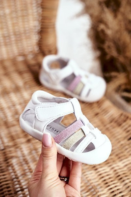 +1Sandały Dziecięce na Rzepy Brokat Białe Ontario