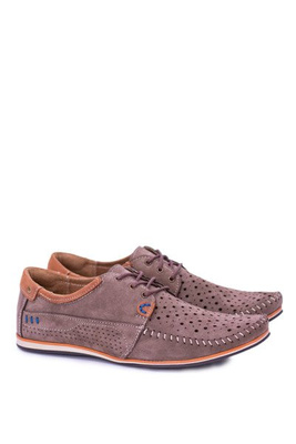 Dziurkowane Skórzane Mokasyny Półbuty Brąz Mortego
