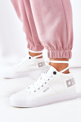 +1Damskie Skórzane Tenisówki Z Napisem BIG STAR EE274316 Białe