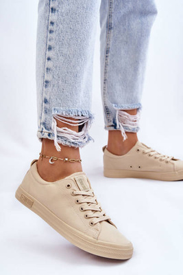 Damskie Gładkie Niskie Trampki Big Star LL274061 Beżowe