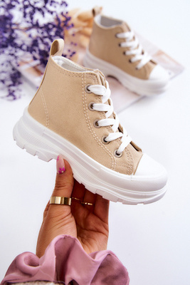 Dziecięce Wysokie Trampki Wiązane Beżowe Freeze
