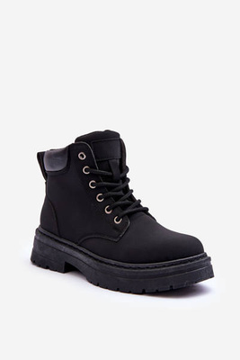 Ocieplane Zamszowe Botki Workery Wiązane Czarne Pierro