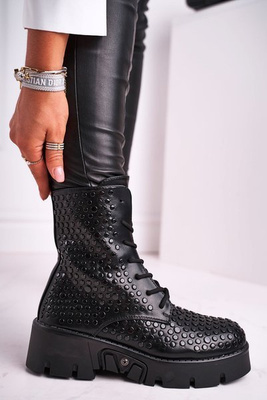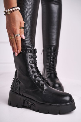 Botki Damskie Z Nitami Na Platformie Grunge Czarne Hard Rock